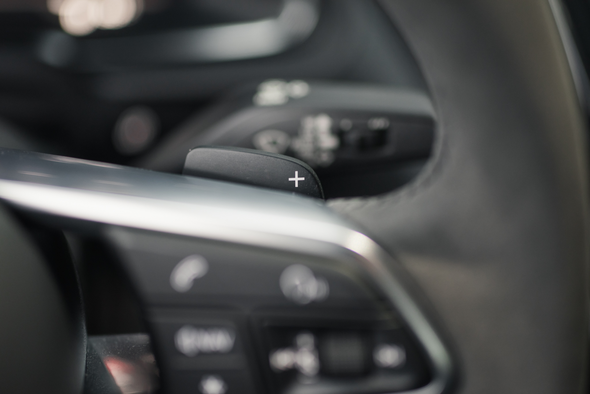 • Wielofunkcyjna kierownica sportowa, obszyta skórą, spłaszczona u dołu, z dodatkowymi przyciskami funkcyjnymi