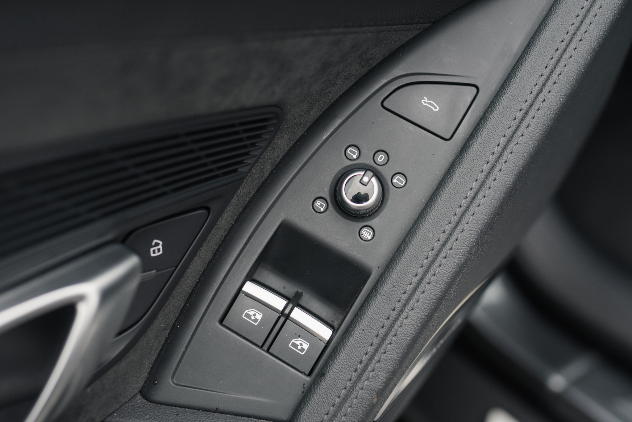 • Obręcz kierownicy i dźwignia zmiany biegów obszyte skórą i Alcantarą