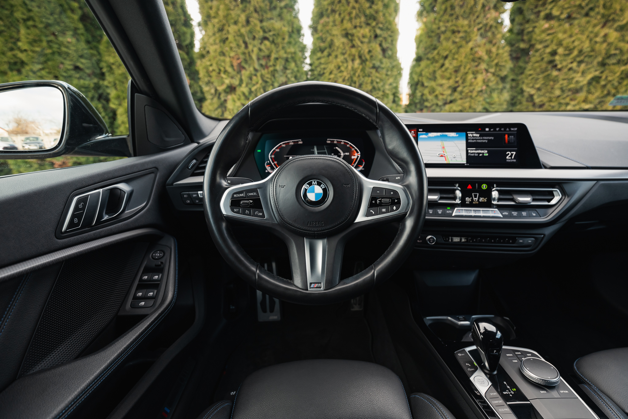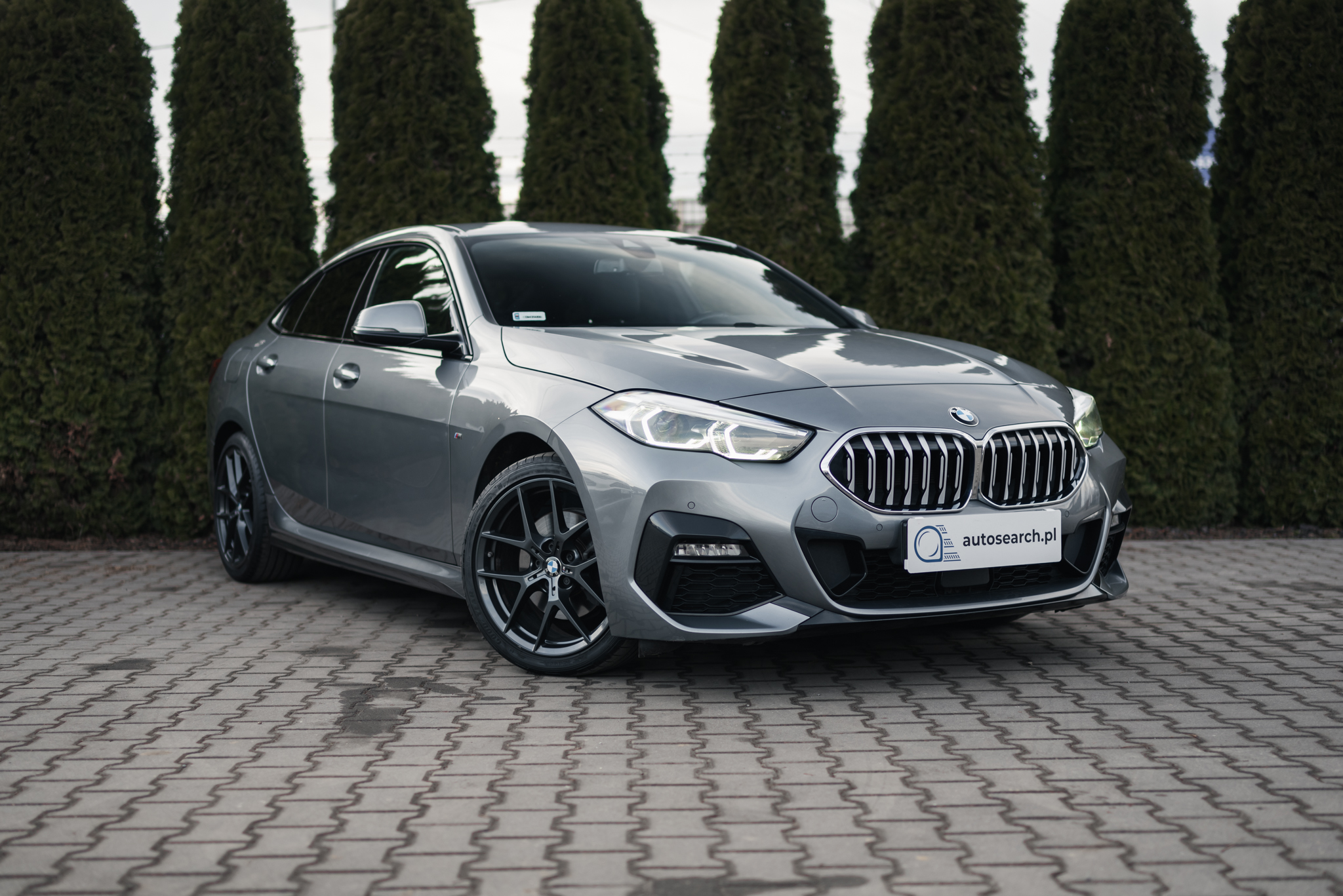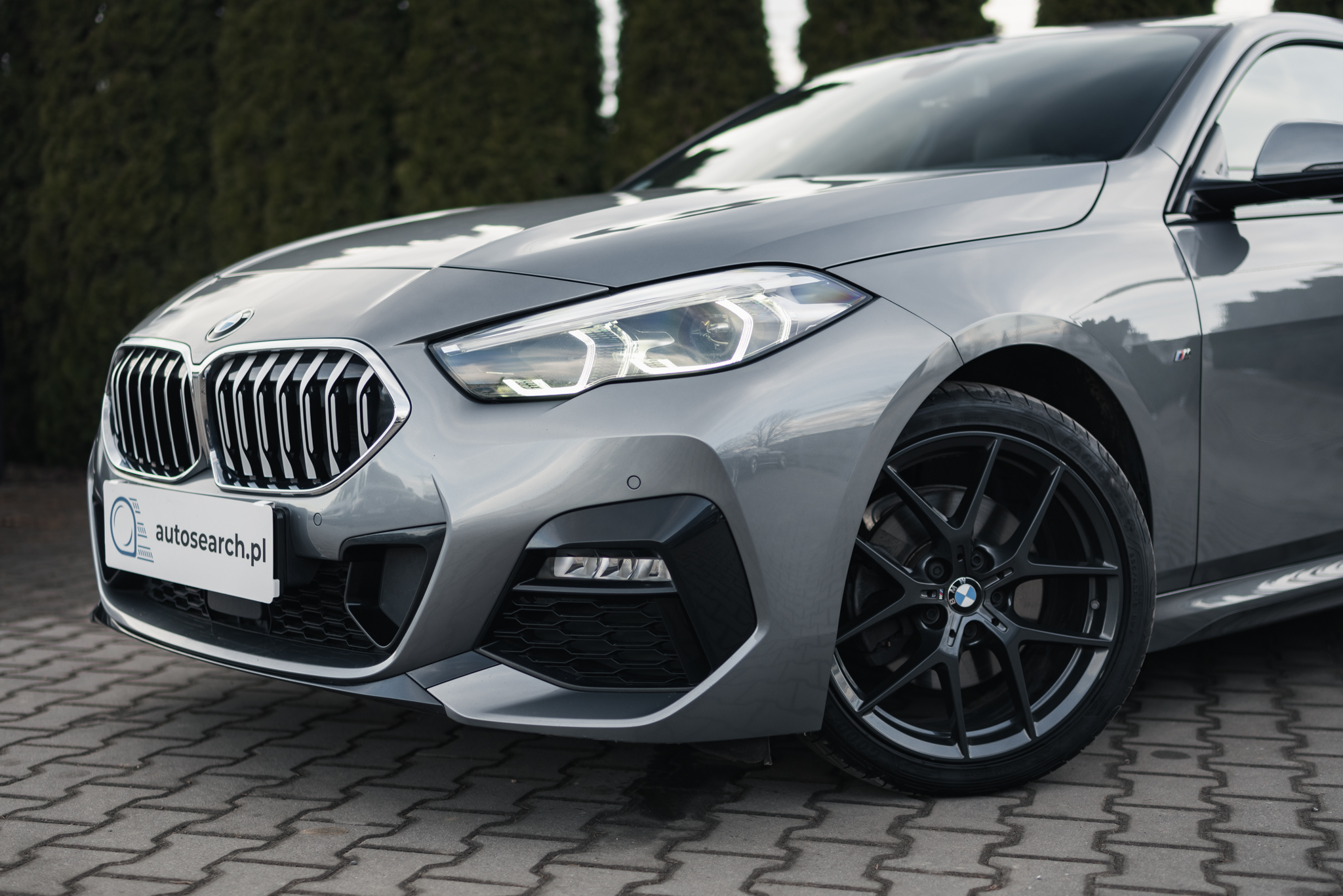 Niemal bliźniacze, lecz różniące się kilkoma detalami. Kolejne BMW 218i Gran Coupe z pakietem stylistycznym M Sport, jednak tym razem na jednokolorowych 18-calowych kołach, z przednim grillem wykończonym w kolorze srebrnym. Na pokładzie również BMW Live Cockpit Professional, nagłośnienie HiFi, czy podgrzewane fotele sportowe z regulacją odcinka lędźwiowego oraz podparcia bocznego. We wnętrzu charakterystyczna tapicerka w barwach M Sport, łącząca materiał ze skórą Sensatec.