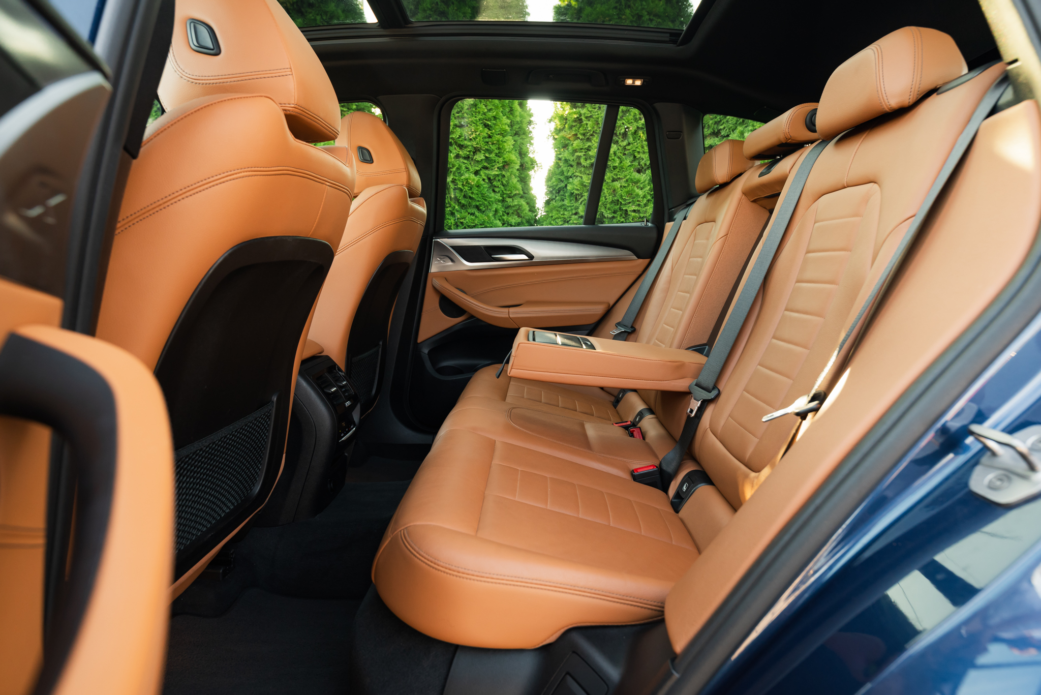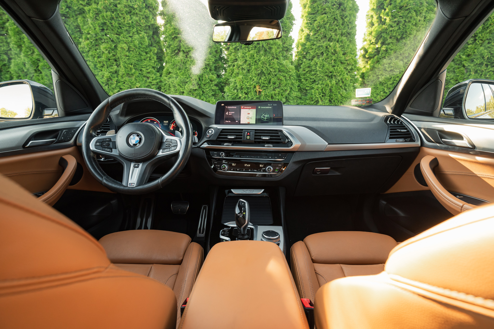 BMW X3 20d dołącza do naszej oferty po raz kolejny w pięknej konfiguracji lakieru Phytonic Blue z tapicerką skórzaną Vernasca w kolorze koniakowym. Ten sportowo nacechowany SUV segmentu D dodatkowo wyposażony jest w pakiet M Sport, uwypuklający dynamiczne aspiracje. Jednocześnie wciąż mamy do czynienia z wygodnym i przestronnym autem, które świetnie łączy dobre osiągi z rozsądnym zużyciem paliwa.