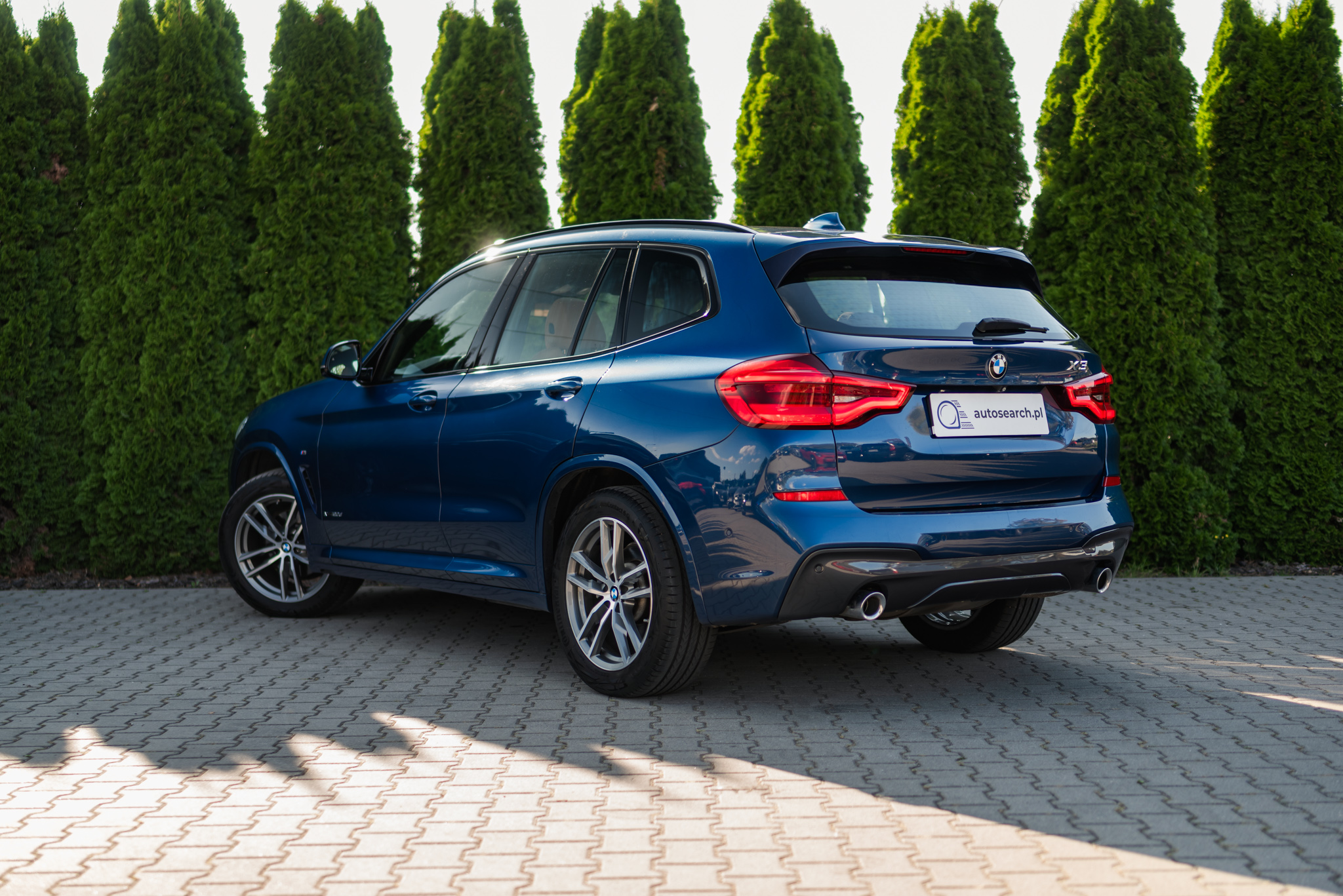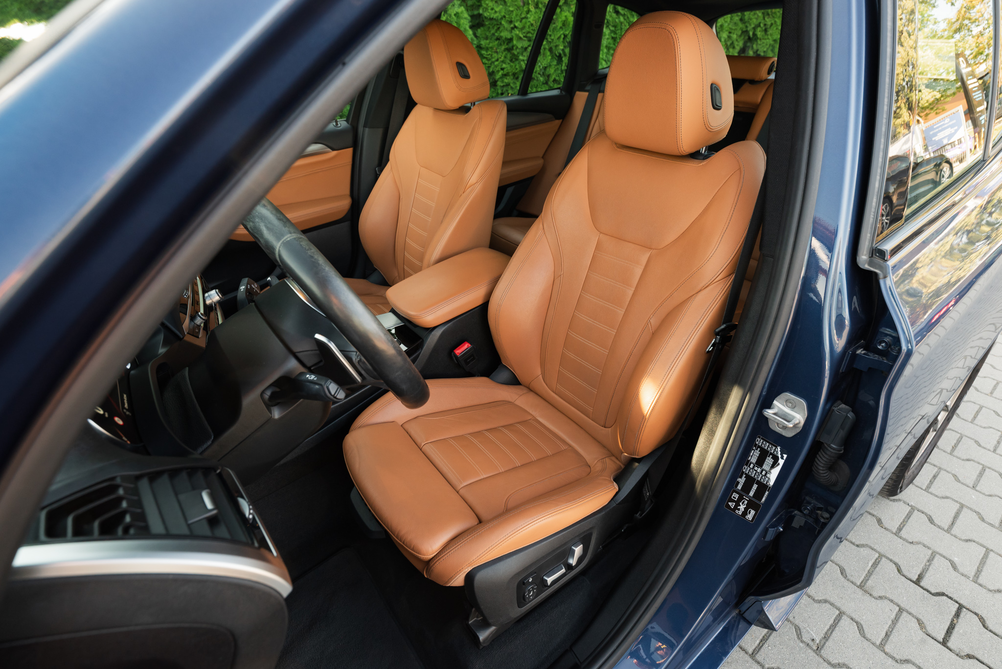 Kolejne BMW X3 20d dołącza do naszej oferty w pięknej konfiguracji – lakier Phytonic Blue łączy się tu z koniakową skórą Vernasca. Klasycznie, mamy przed oczami odmianę M Sport z bogatym wyposażeniem pokładowym. Znajdziemy tu między innymi fotele przednie z pamięcią ustawień i podgrzewaniem, ogrzewaną kierownicę, oświetlenie ambientowe, panoramiczne okno dachowe, dostęp bezkluczykowy, czy wyświetlacz Head Up.
