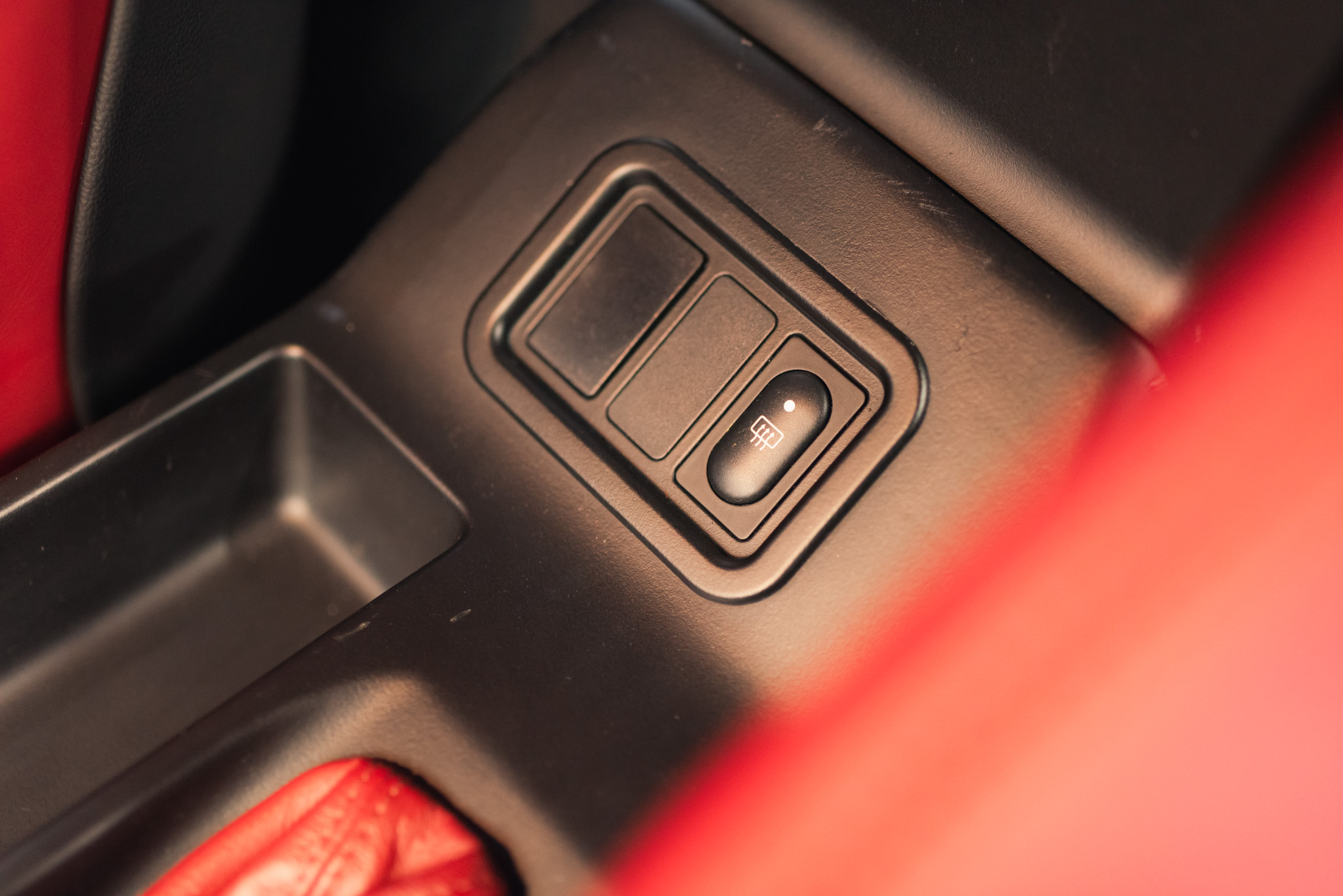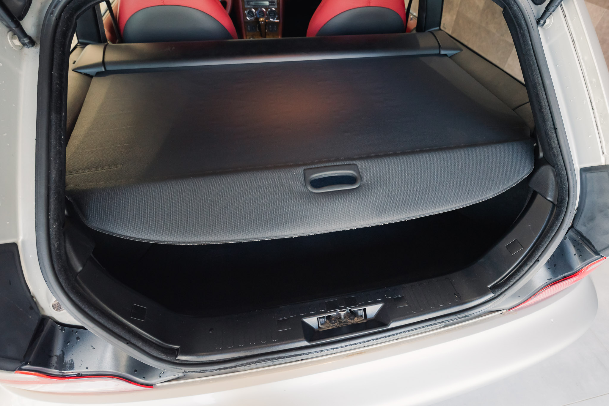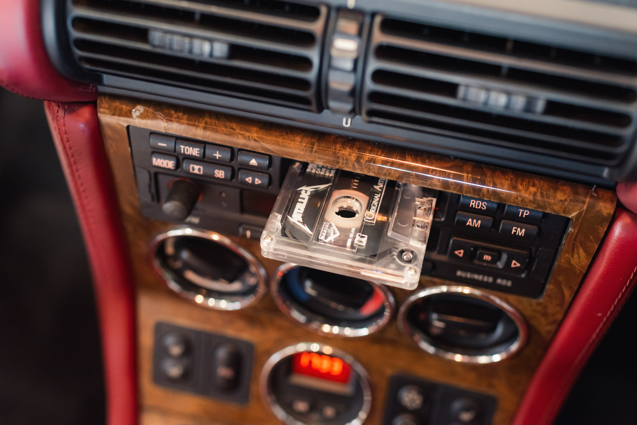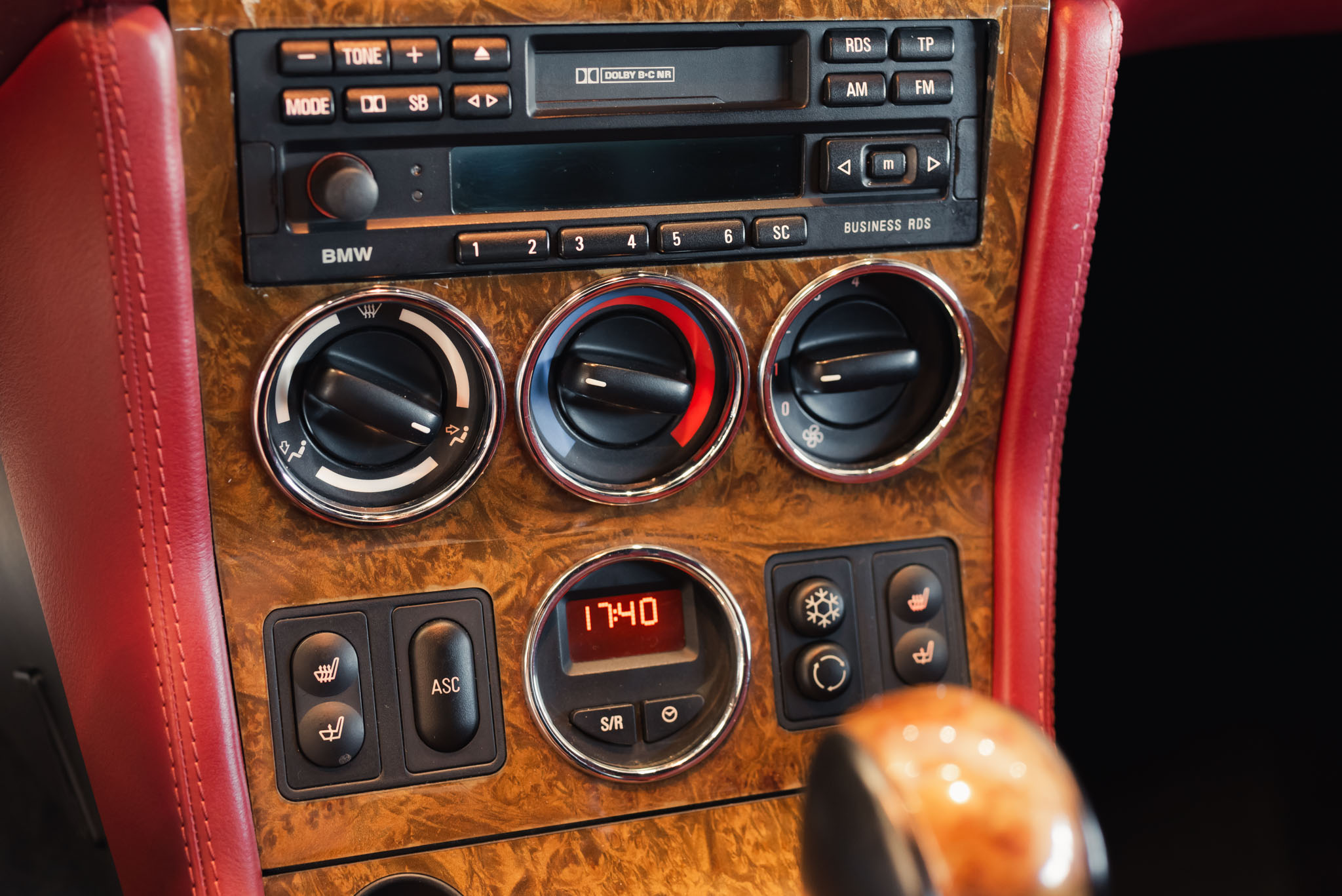 - Wykończenie wnętrza: czerwona skóra + wstawki drewniane (orzech)