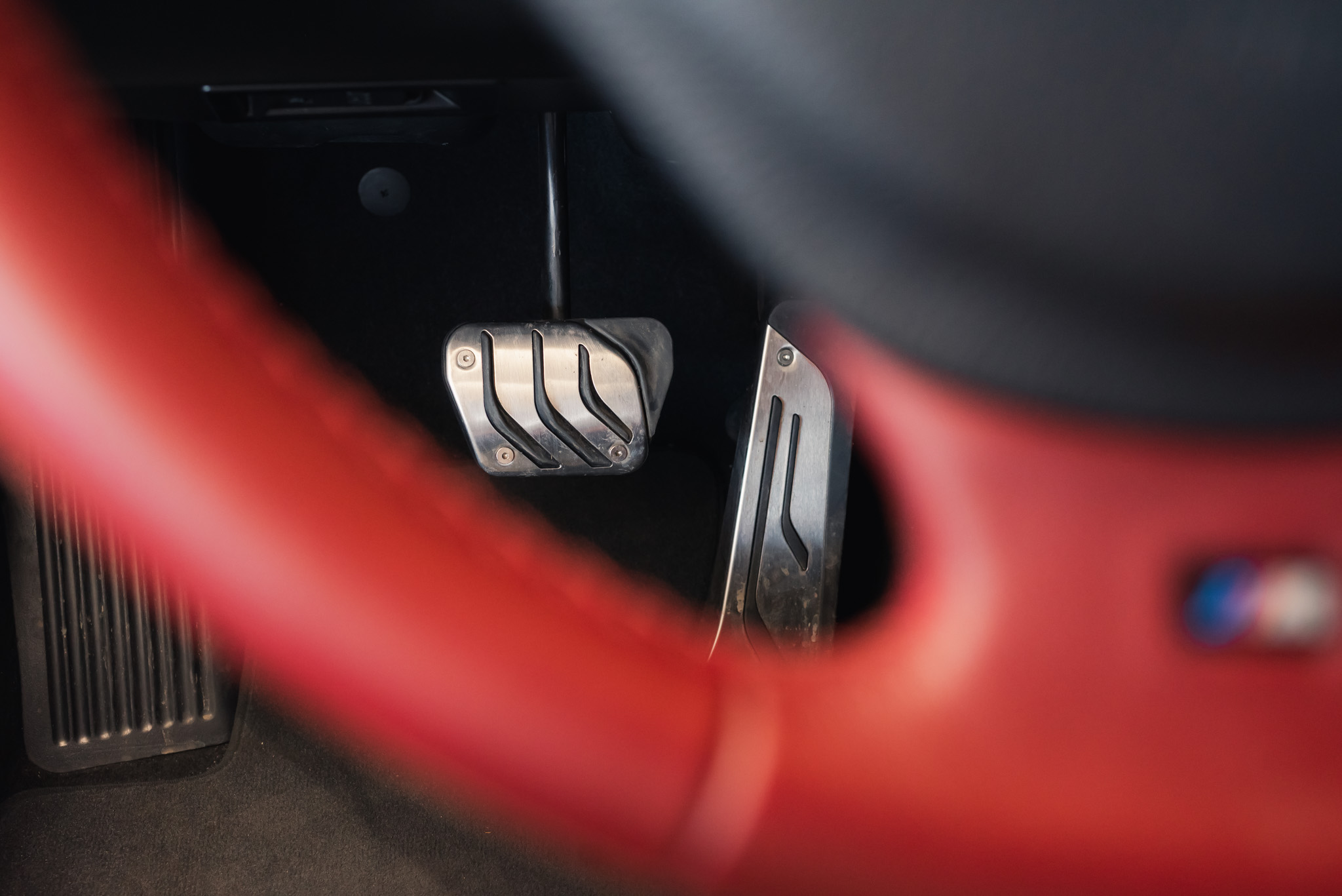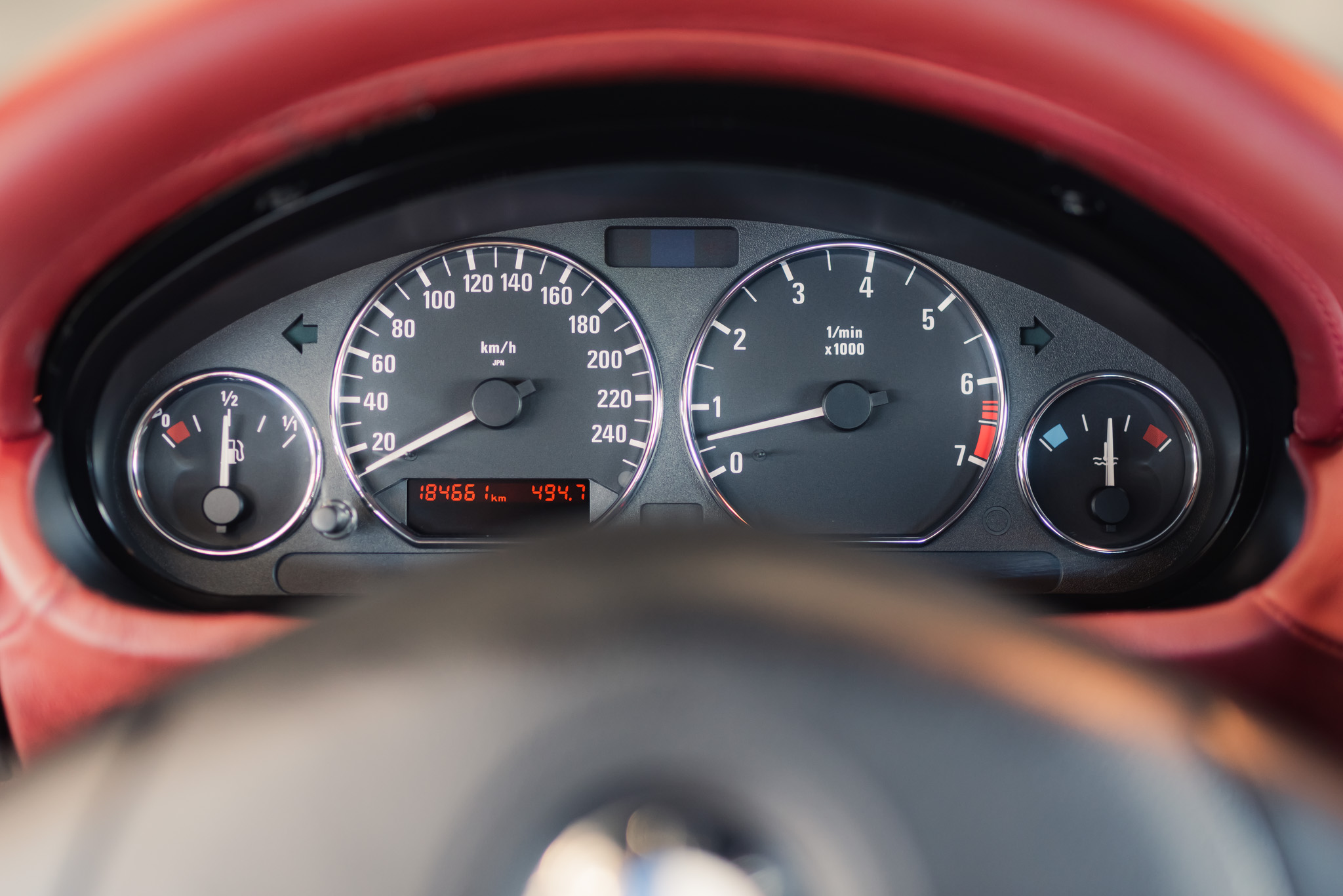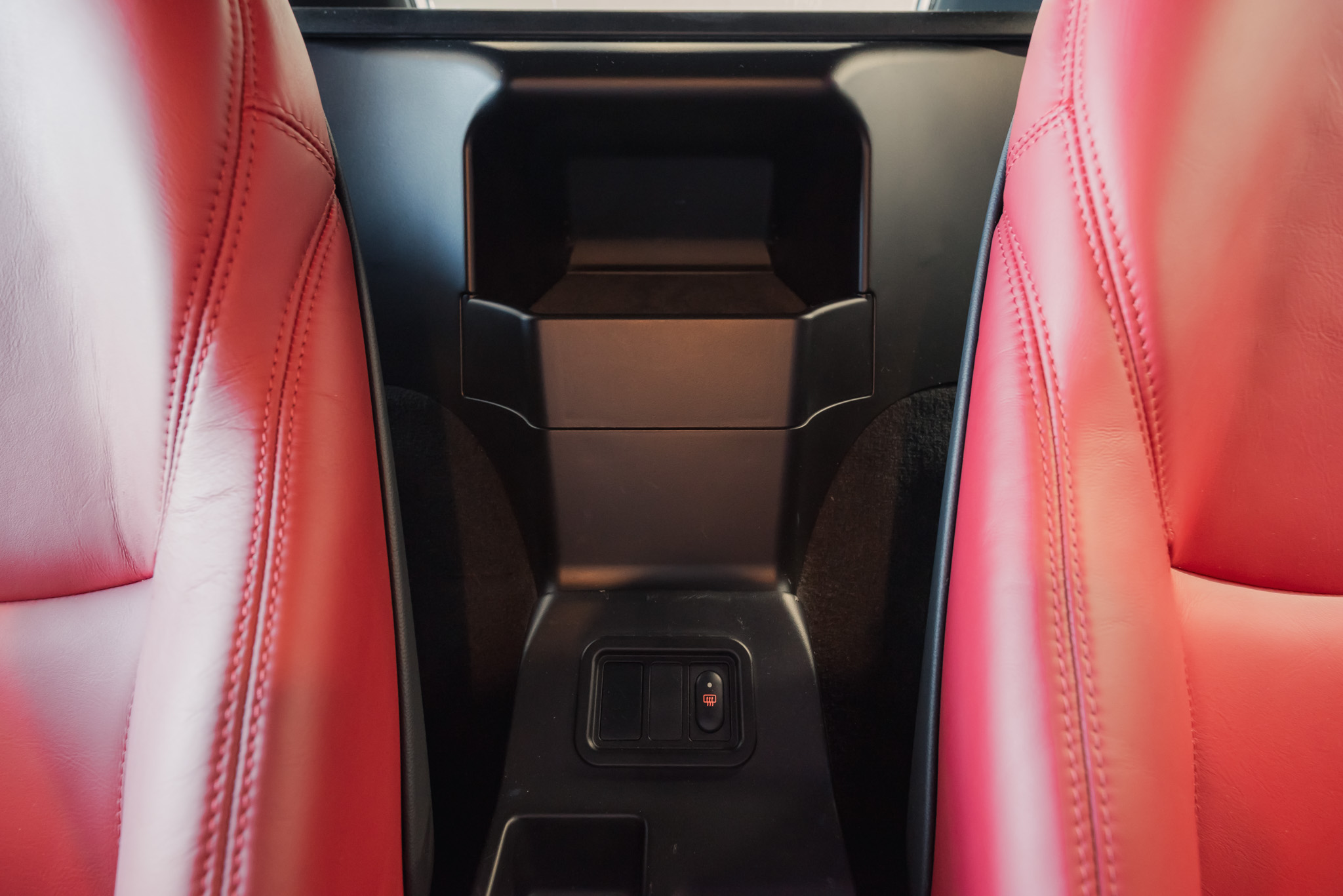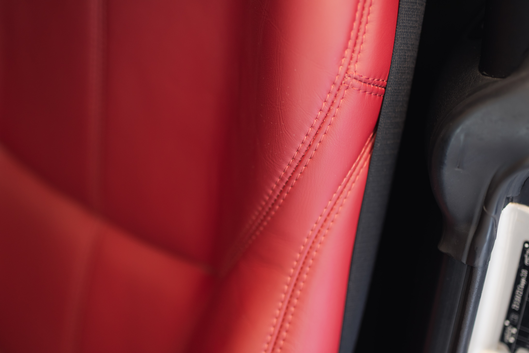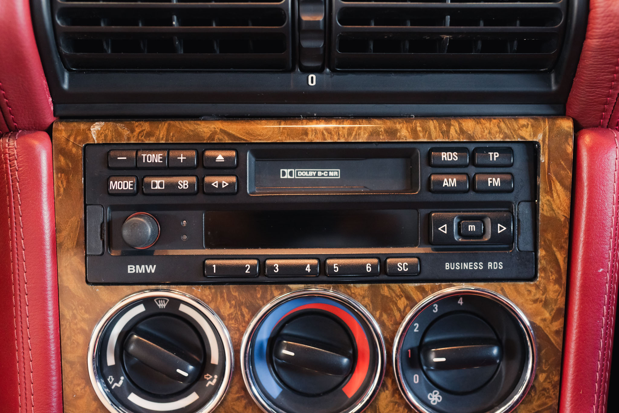 - Wykończenie wnętrza: czerwona skóra + wstawki drewniane (orzech)