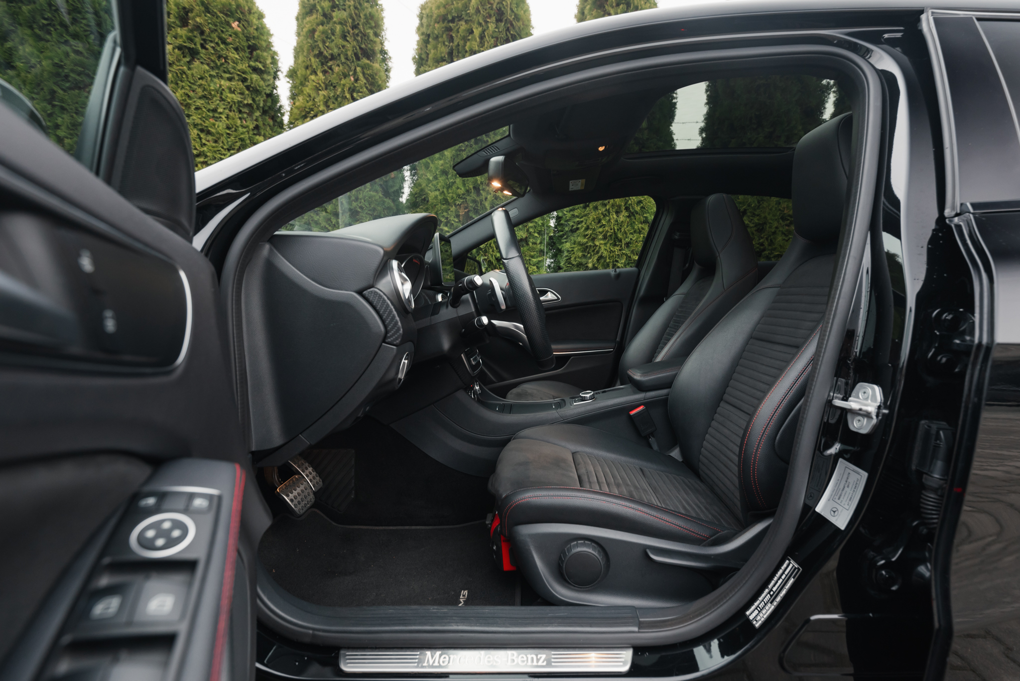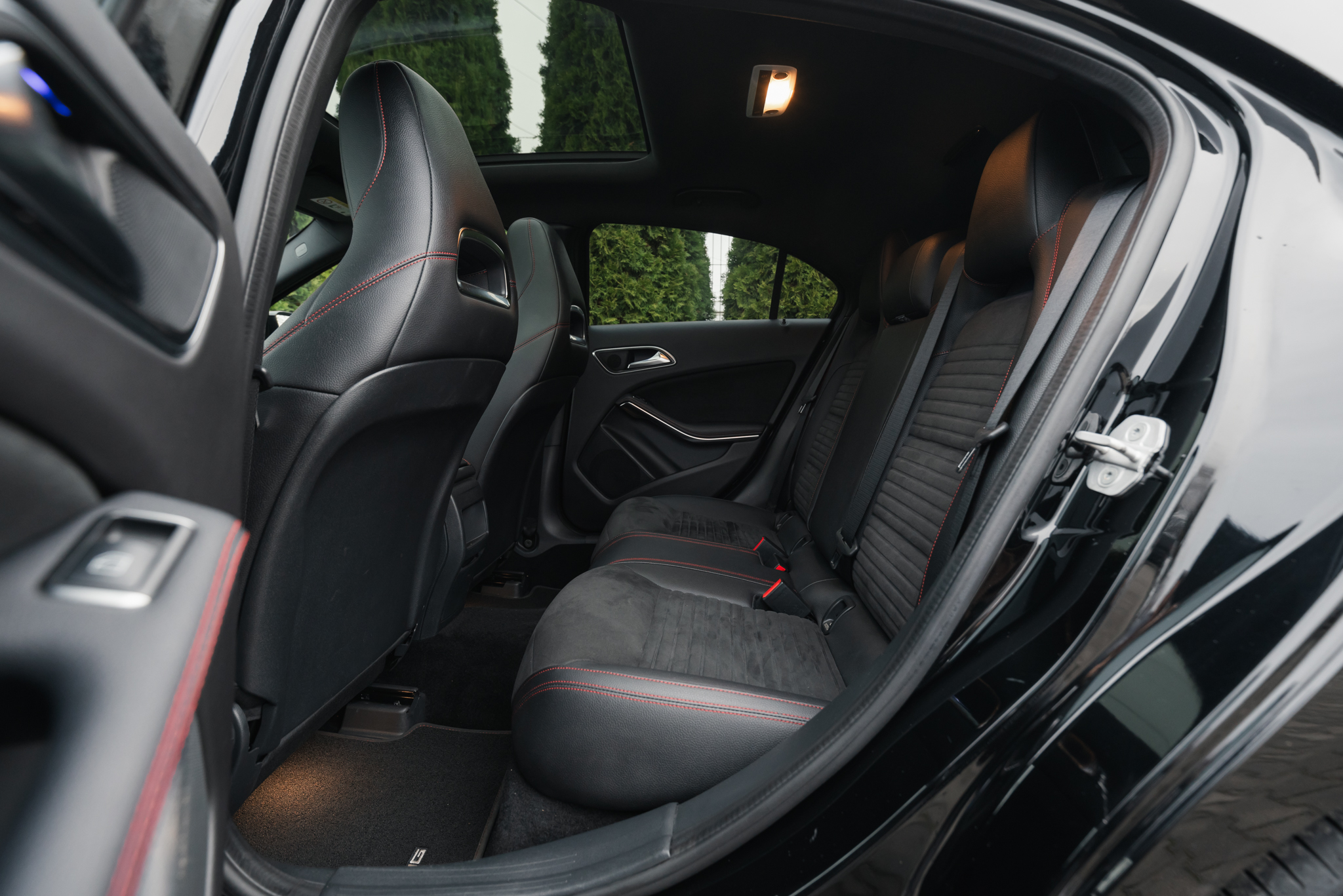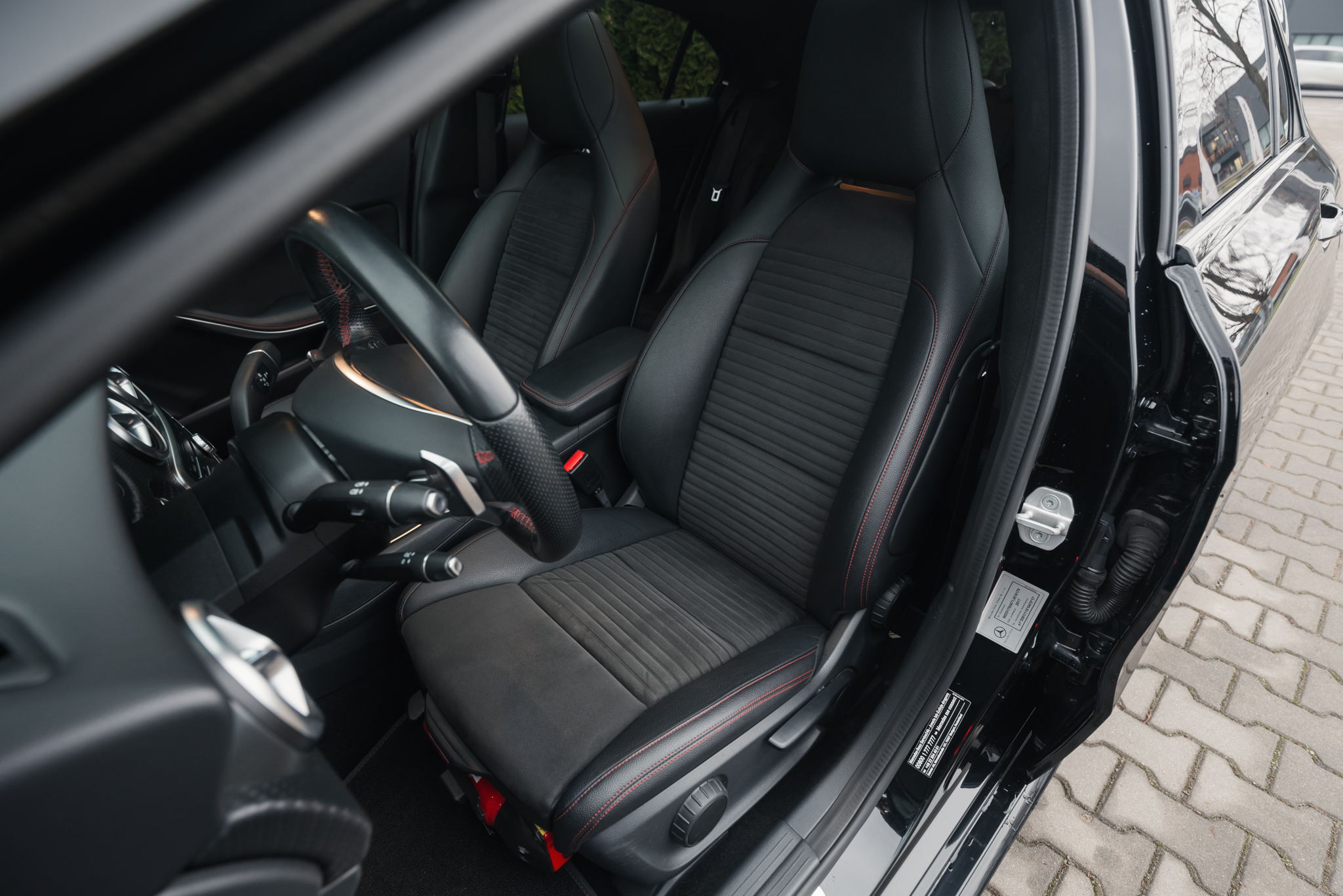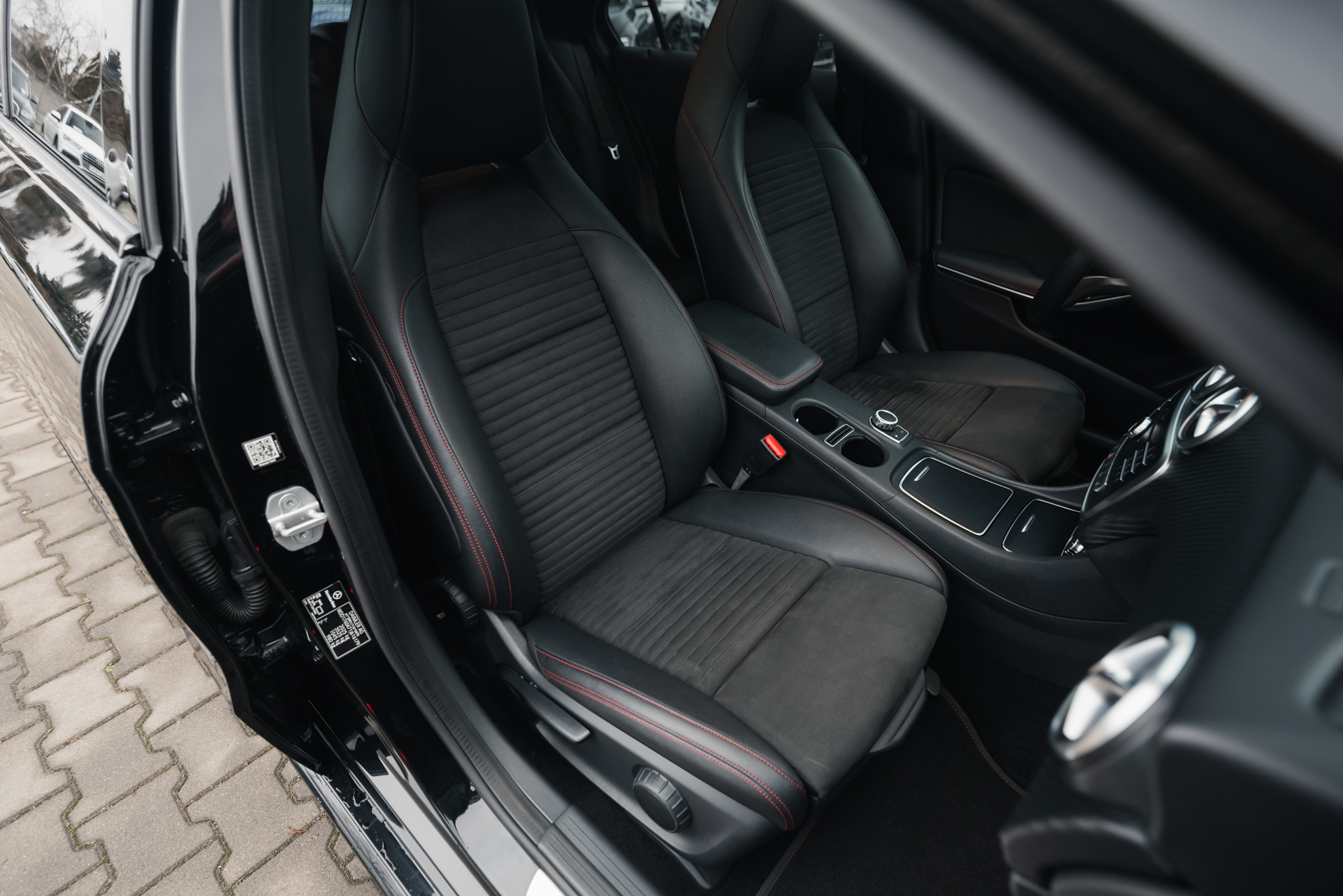 - Fotele skórzane/alcantara z akcentami w kolorze czerwonym