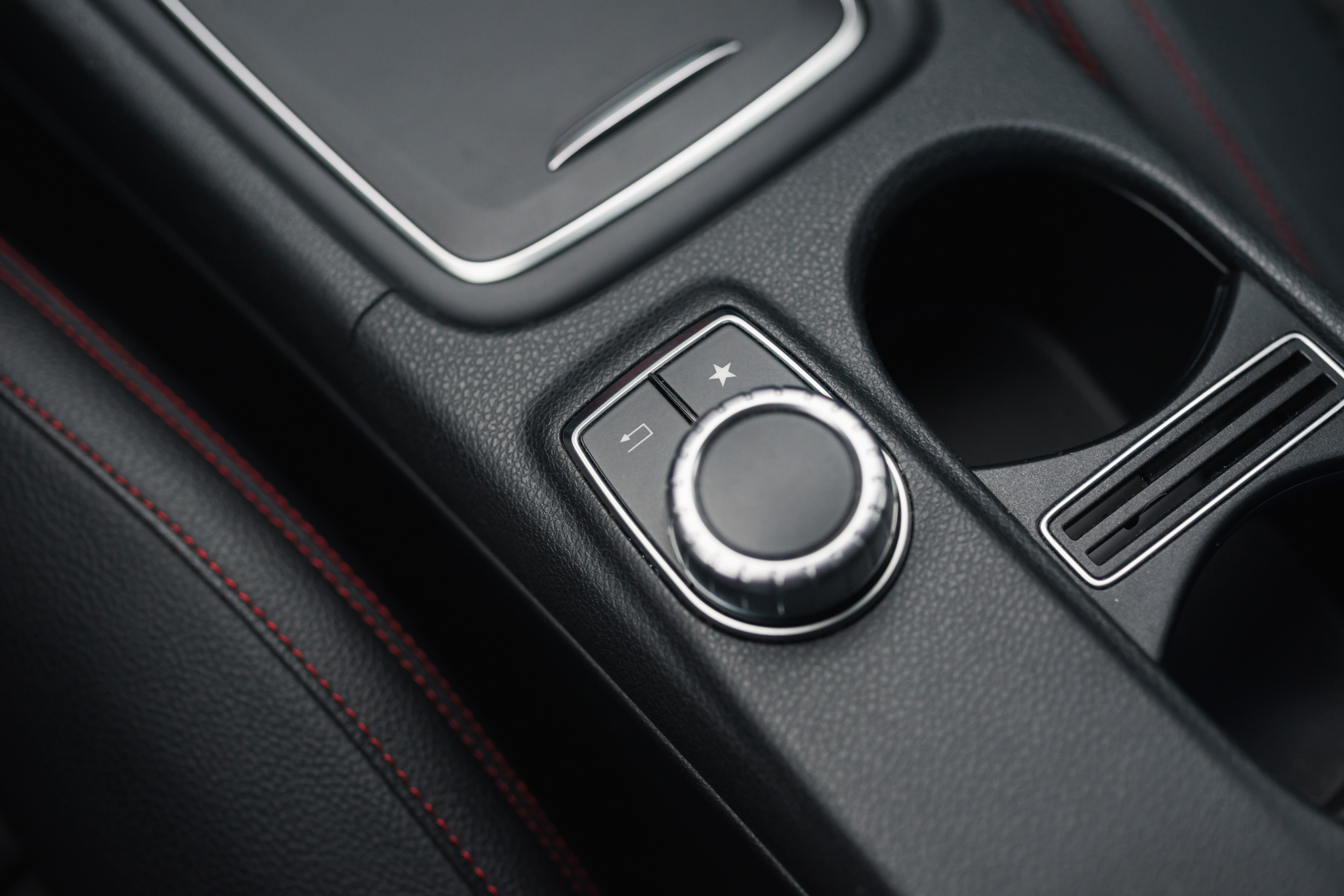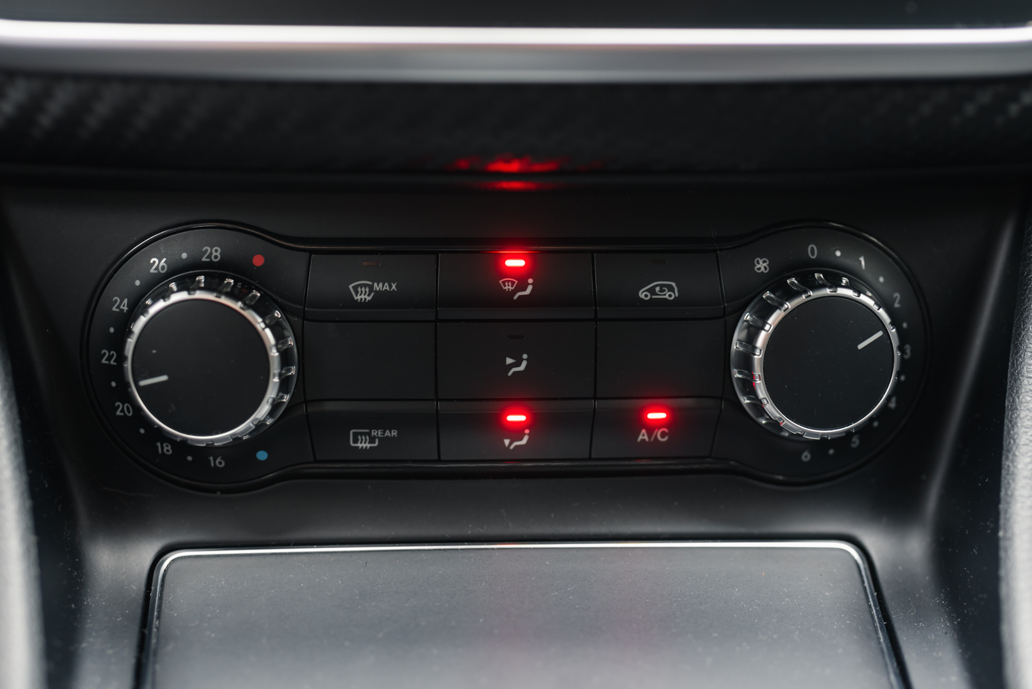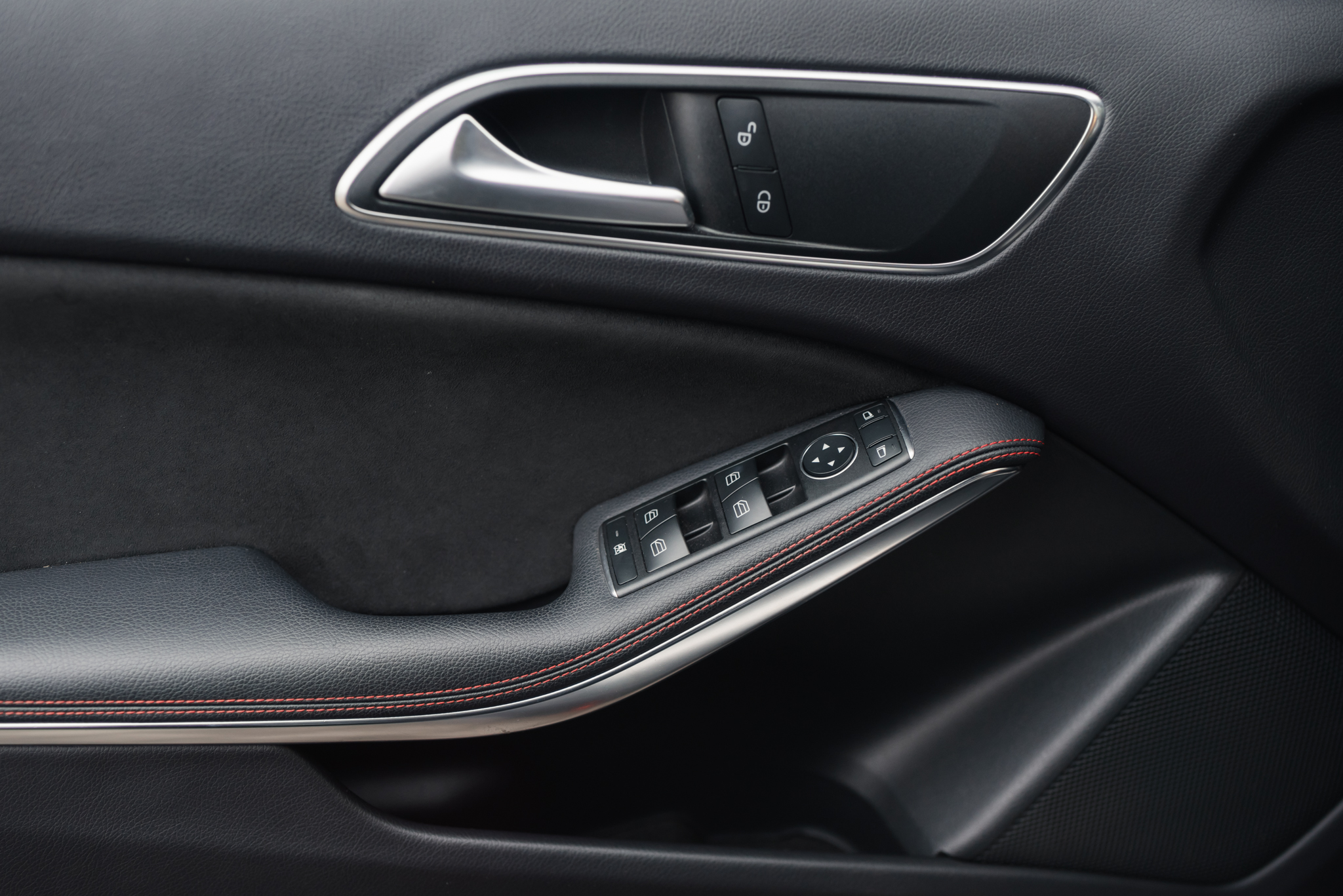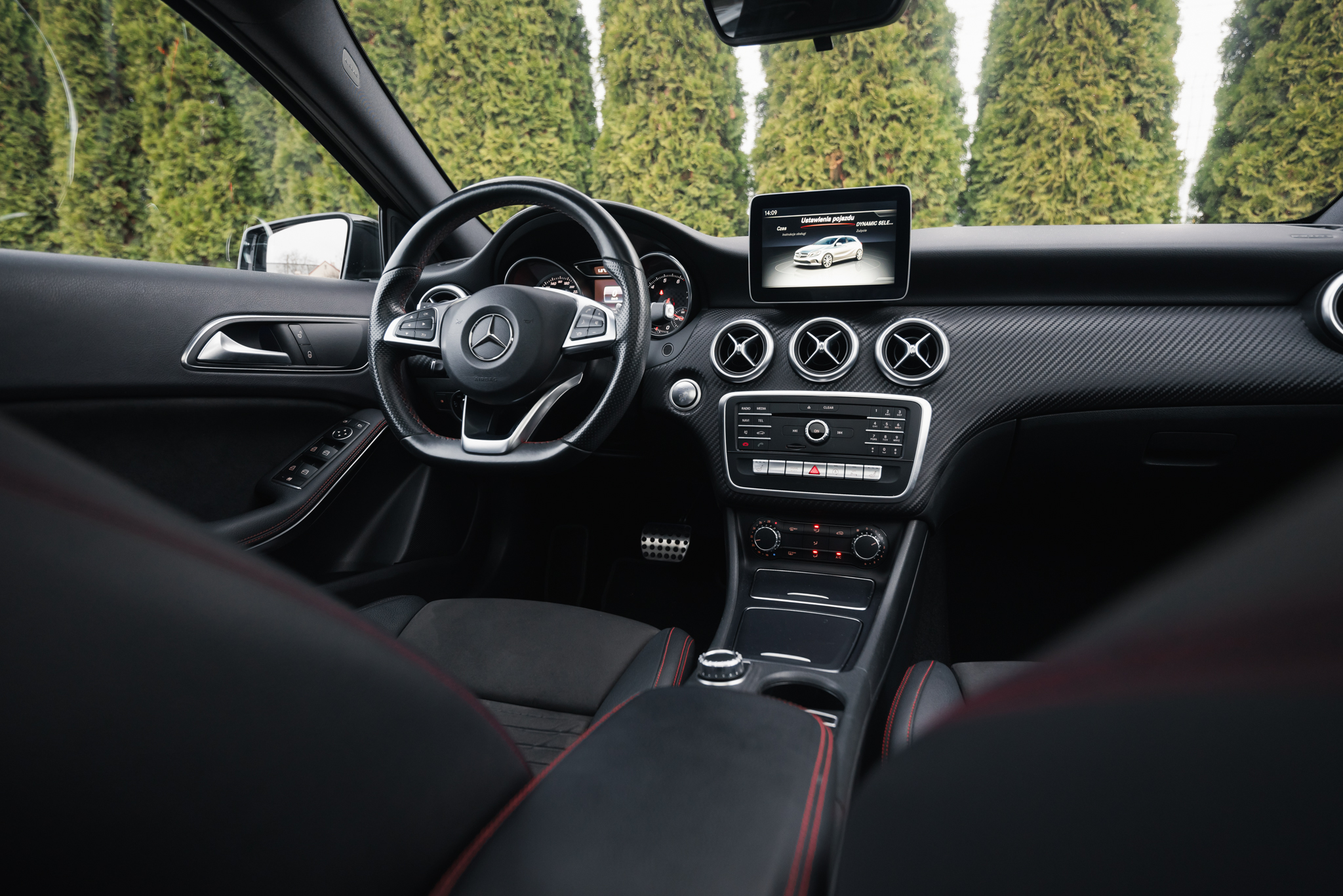 - Fotele skórzane/alcantara z akcentami w kolorze czerwonym