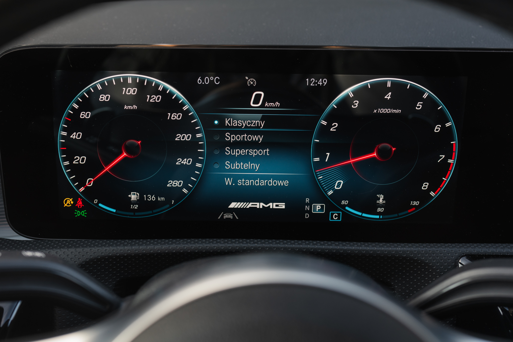 - Kierownica skórzana AMG, wielofunkcyjna z łopatkami zmiany biegów