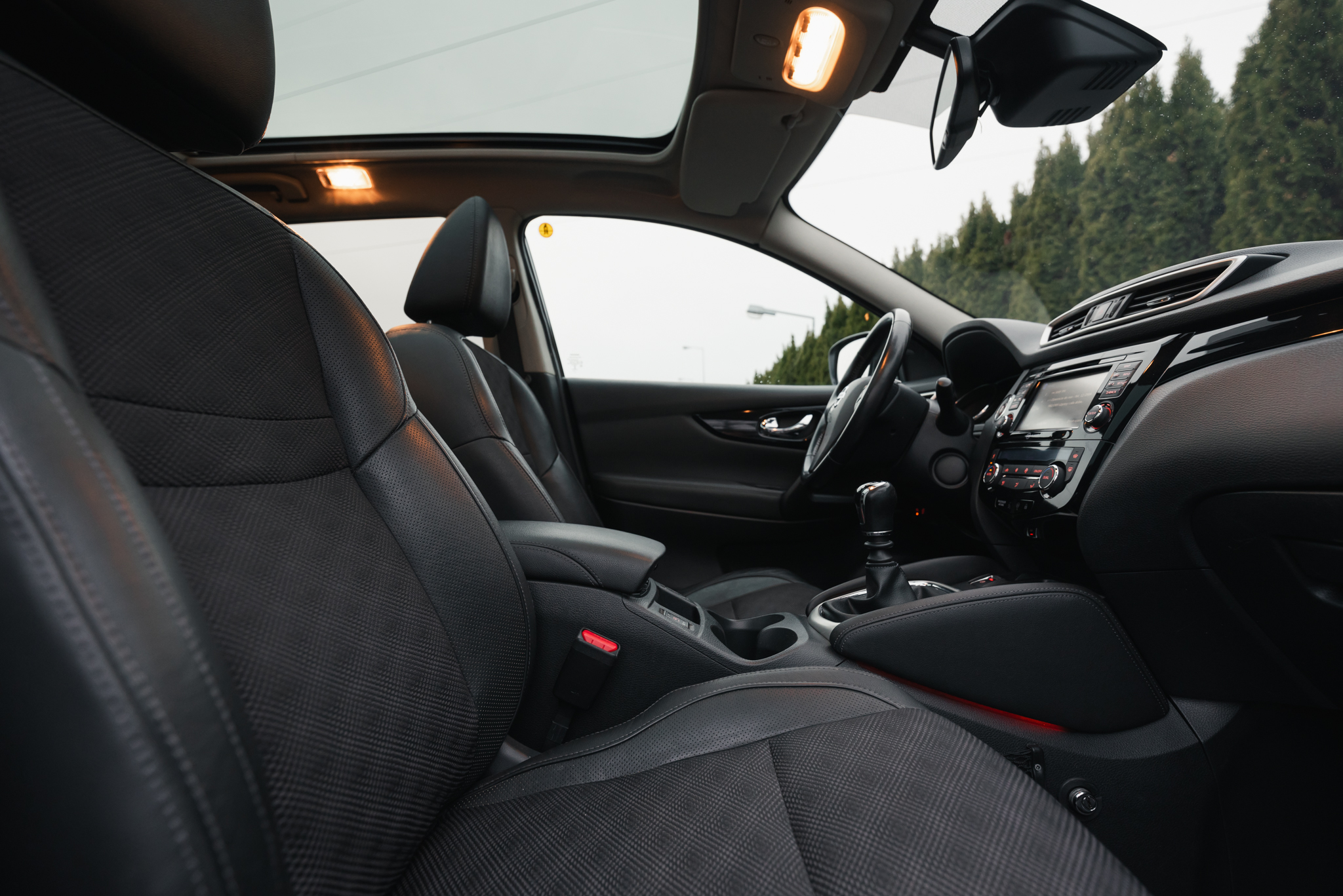 Nissan Qashqai to auto, które wdarło się na rynek z hukiem. Pierwsza generacja była prawdziwym hitem, zapewniając kolejnym odsłonom gwarantowane miejsce w czołówce crossoverów. Prezentowane auto to drugie wcielenie modelu, będące modelem bliźniaczym do Renault Kadjar, a także dzielące technologię z nieco większymi modelami – Renault Koleosem oraz Nissanem X-Trail. Pochodzi z 2014 roku i przez ten czas zachowało oryginalną powłokę lakierniczą. Auto posiada bogate wyposażenie – na pokładzie znajdziemy między innymi system kamer 360 stopni, dwustrefową klimatyzację automatyczną, podgrzewane fotele, funkcję odmrażania przedniej szyby, 19-calowe felgi aluminiowe, czy wielki panoramiczny dach.