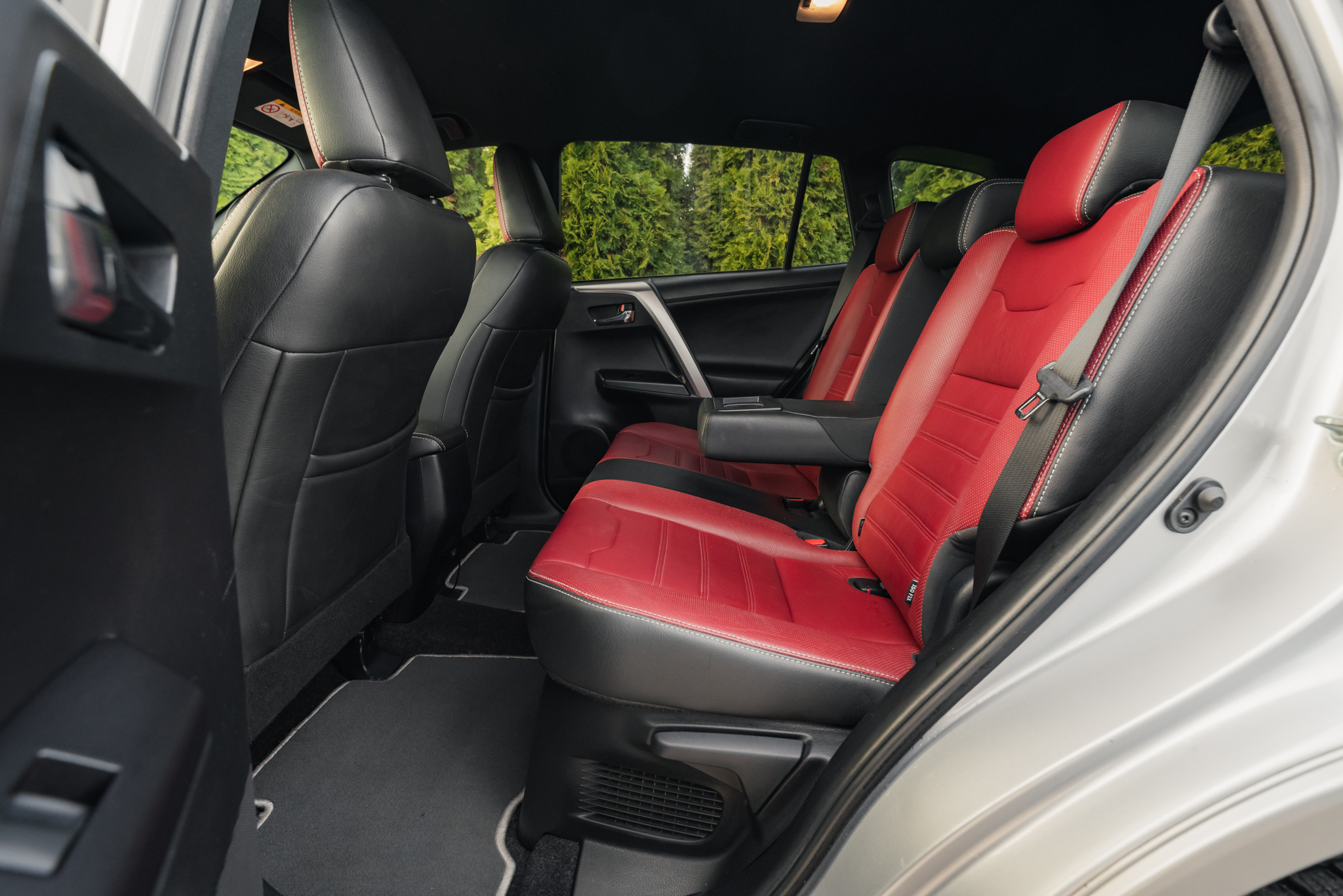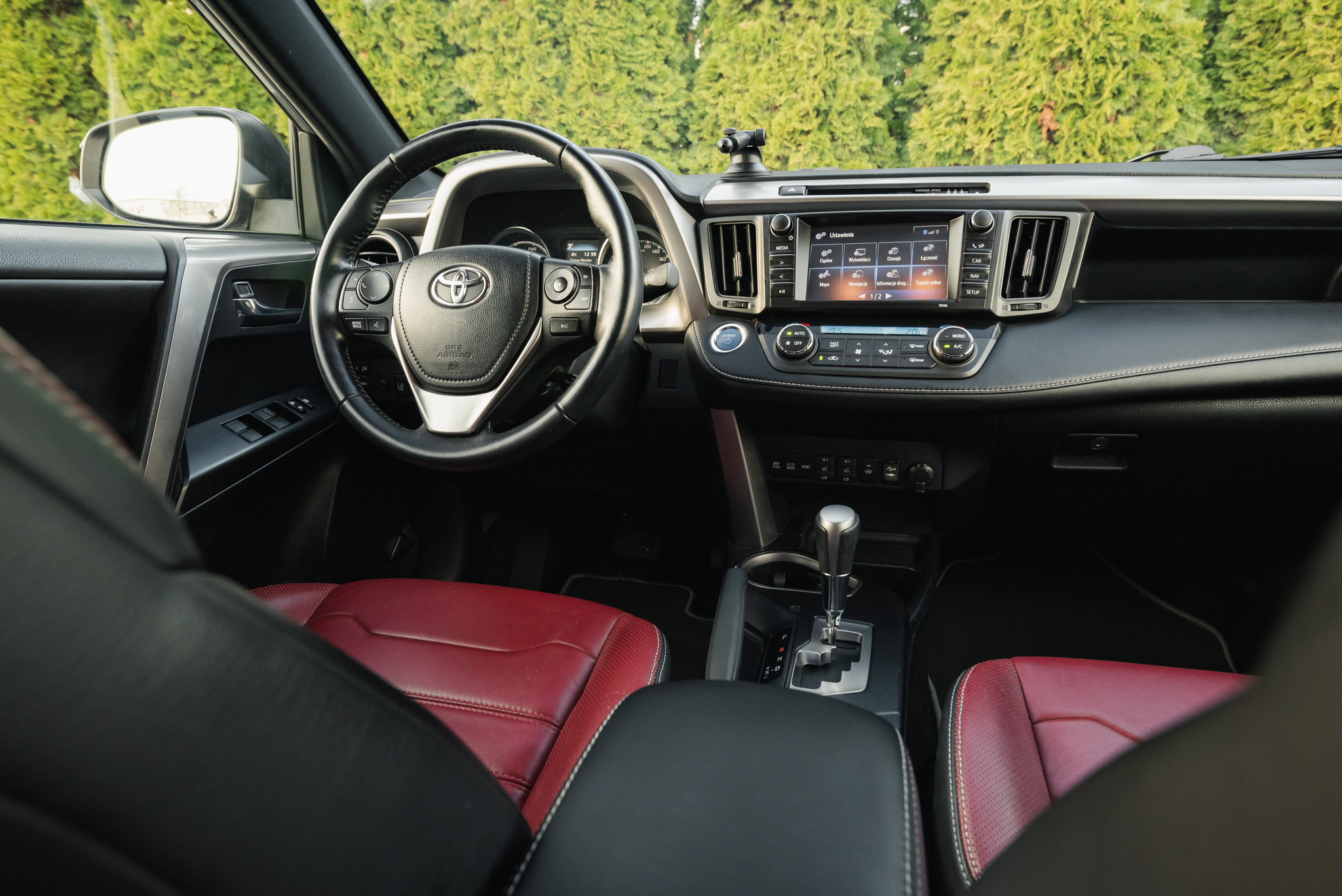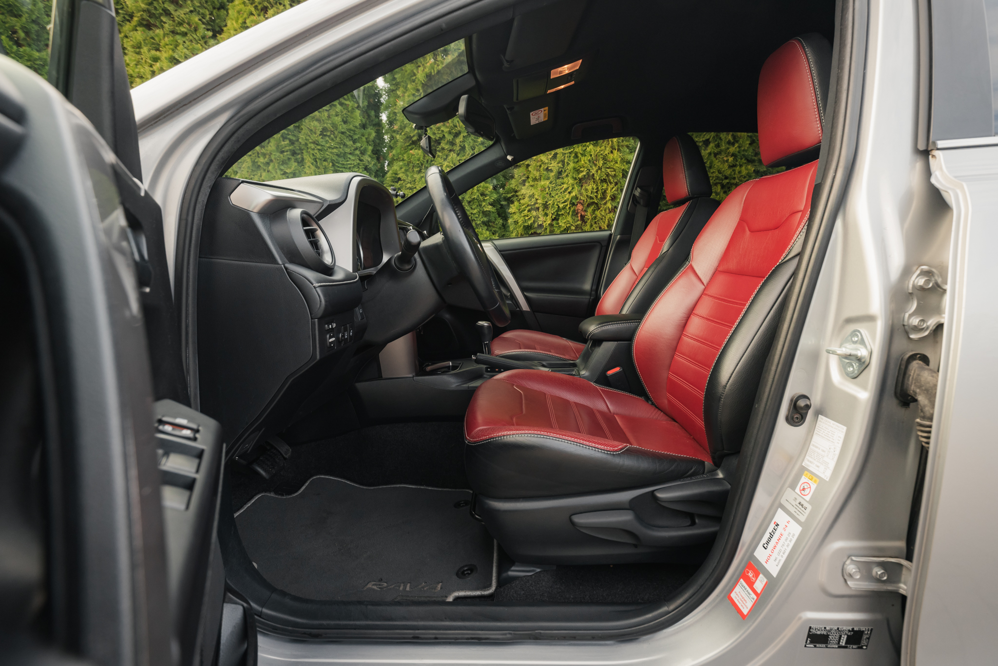 Toyota RAV4 w wersji 2.5 Hybrid tym razem dołącza do naszej oferty w ciekawej, bogato wyposażonej odmianie Selection. Samochód wyróżnia bardzo ciekawa konfiguracja kolorystyczna – mamy tu srebrny lakier, który dodatkowo pokrywa także plastikowe elementy dolne nadwozia, a także czerwoną tapicerkę skórzaną we wnętrzu!