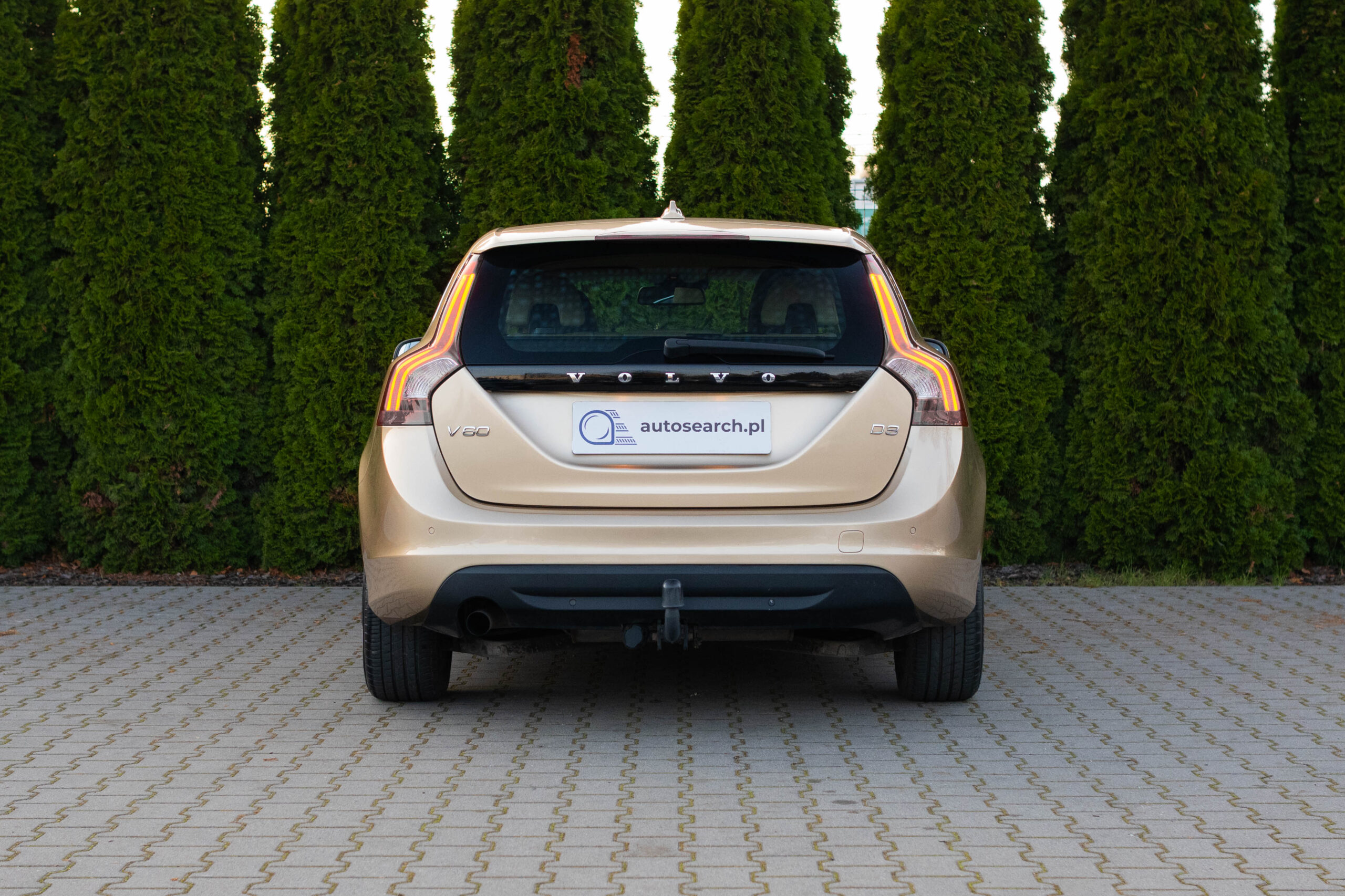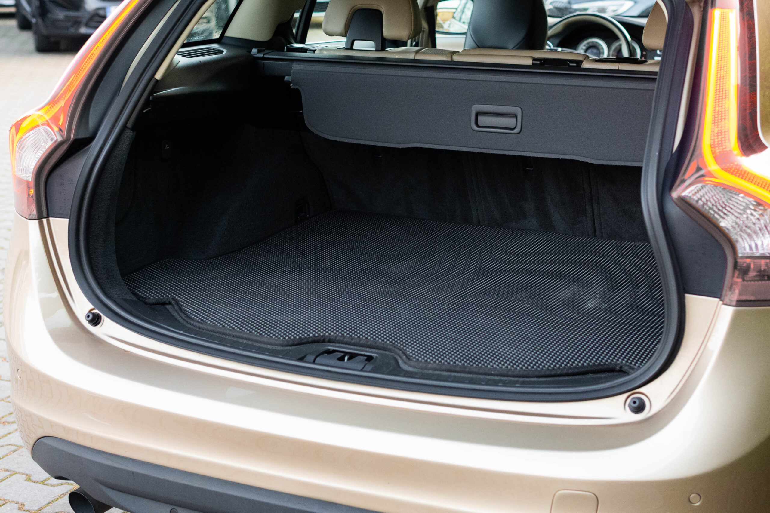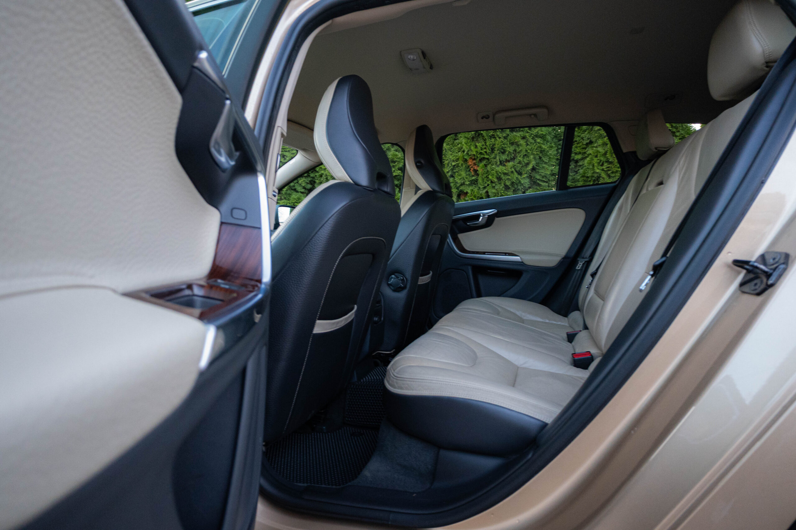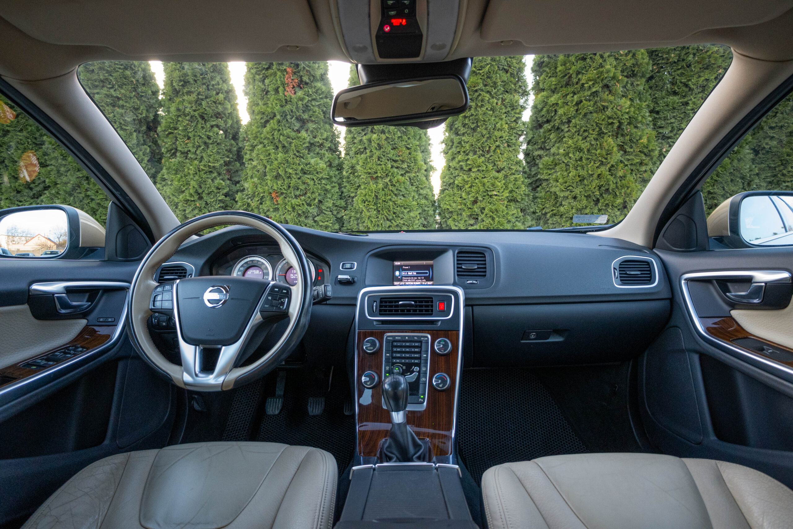 Dziś gościmy Volvo V60 w odmianie wysokoprężnej D3 w bardzo ciekawym zestawieniu kolorystycznym. Rzadki lakier Electrum Gold Metallic łączy się tu z beżowym wnętrzem ozdobionym elementami wykończeniowymi w stylistyce drewna. Ciekawym zabiegiem stylistycznym jest dwukolorowe koło kierownicze, dodające wnętrzu nutę luksusu.