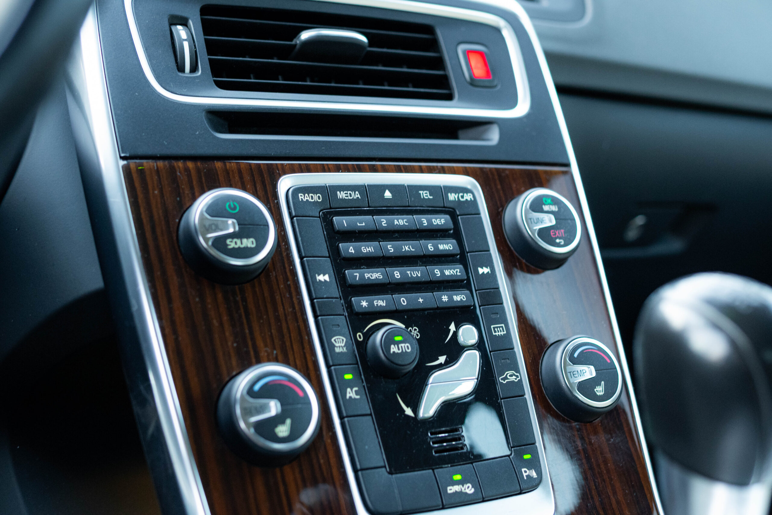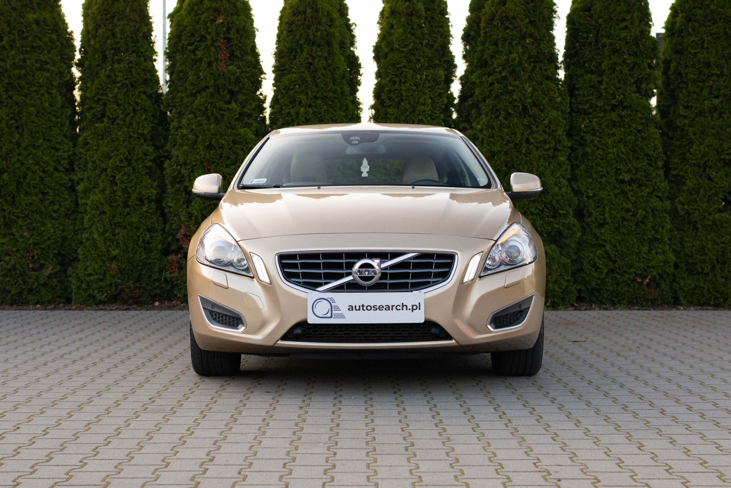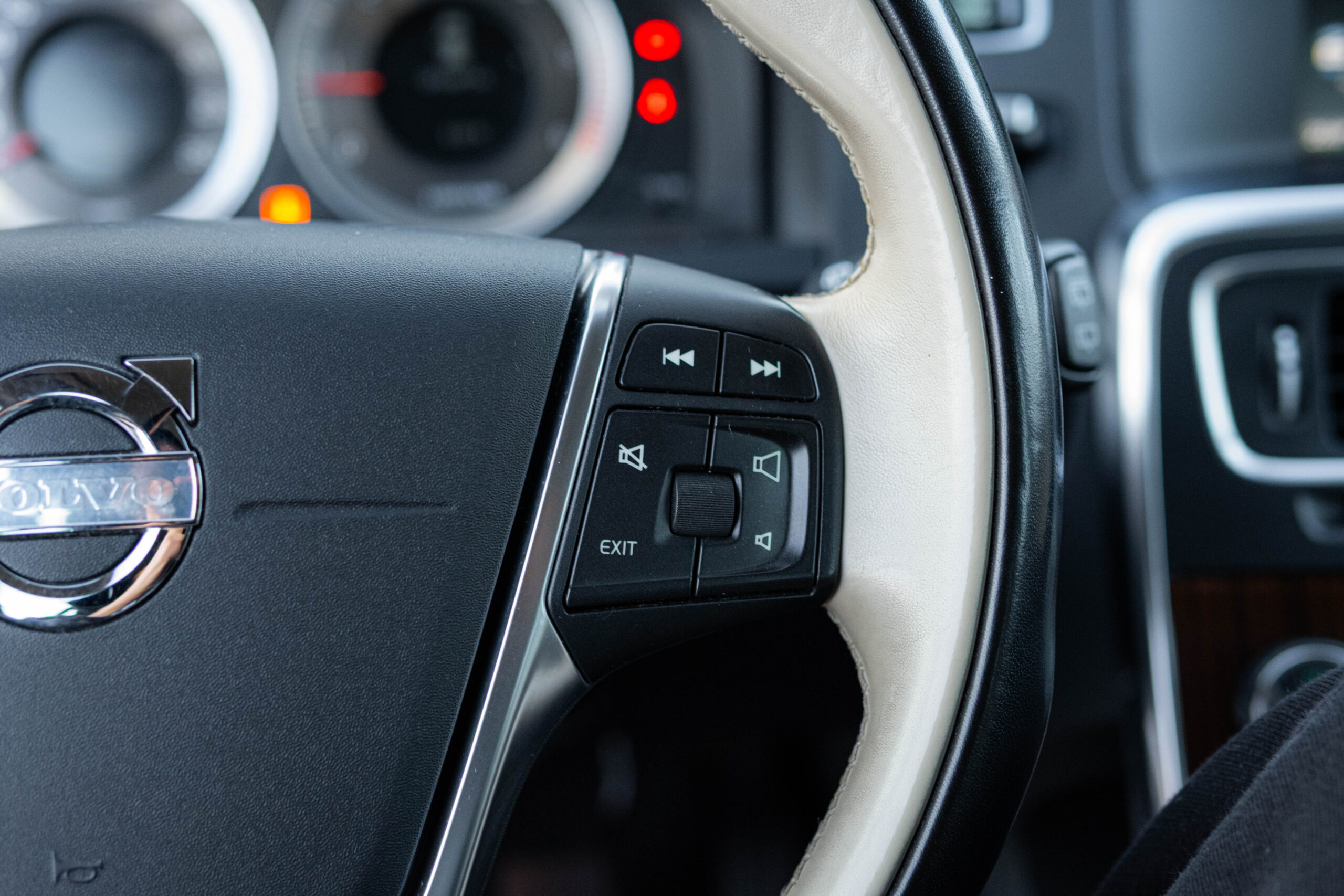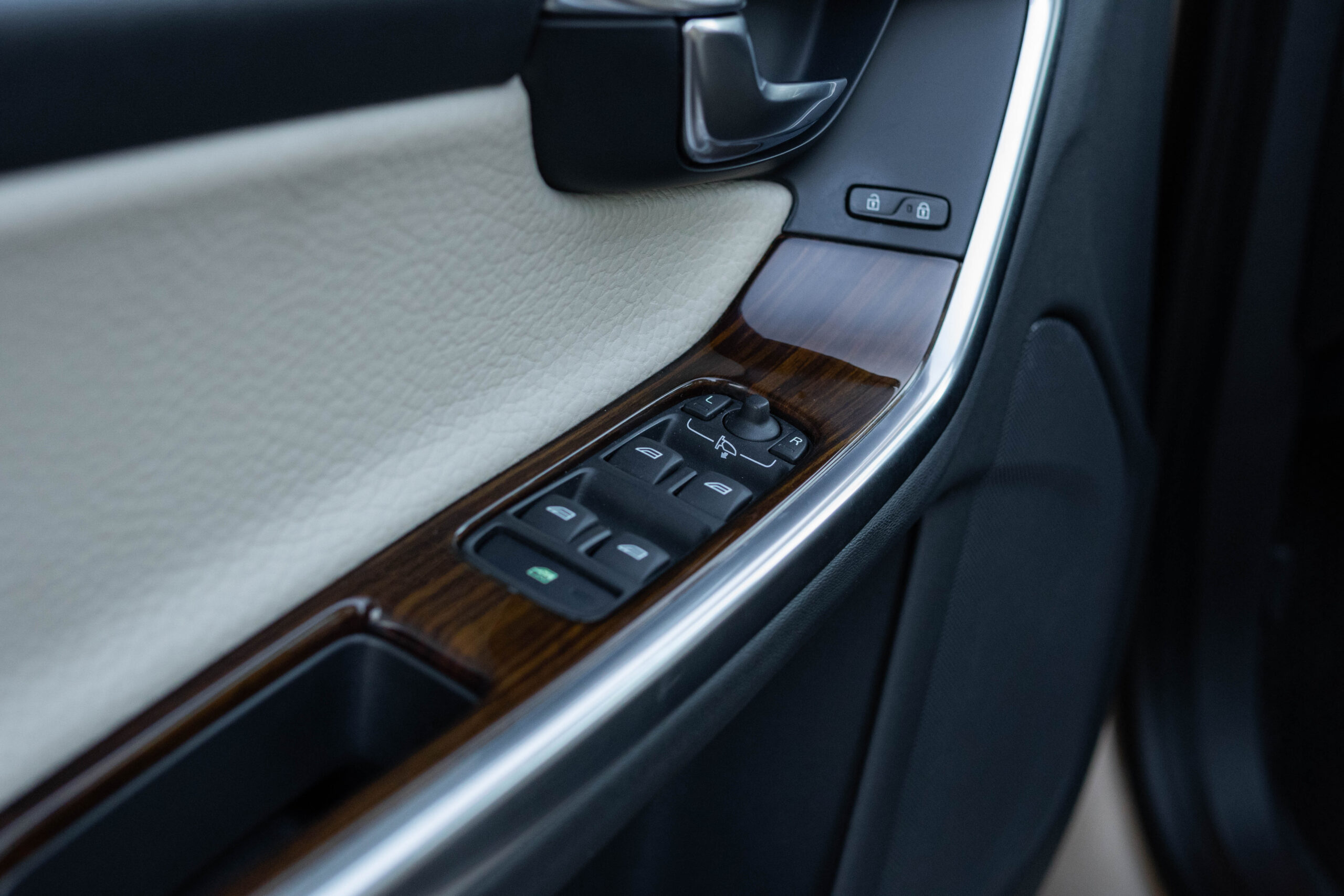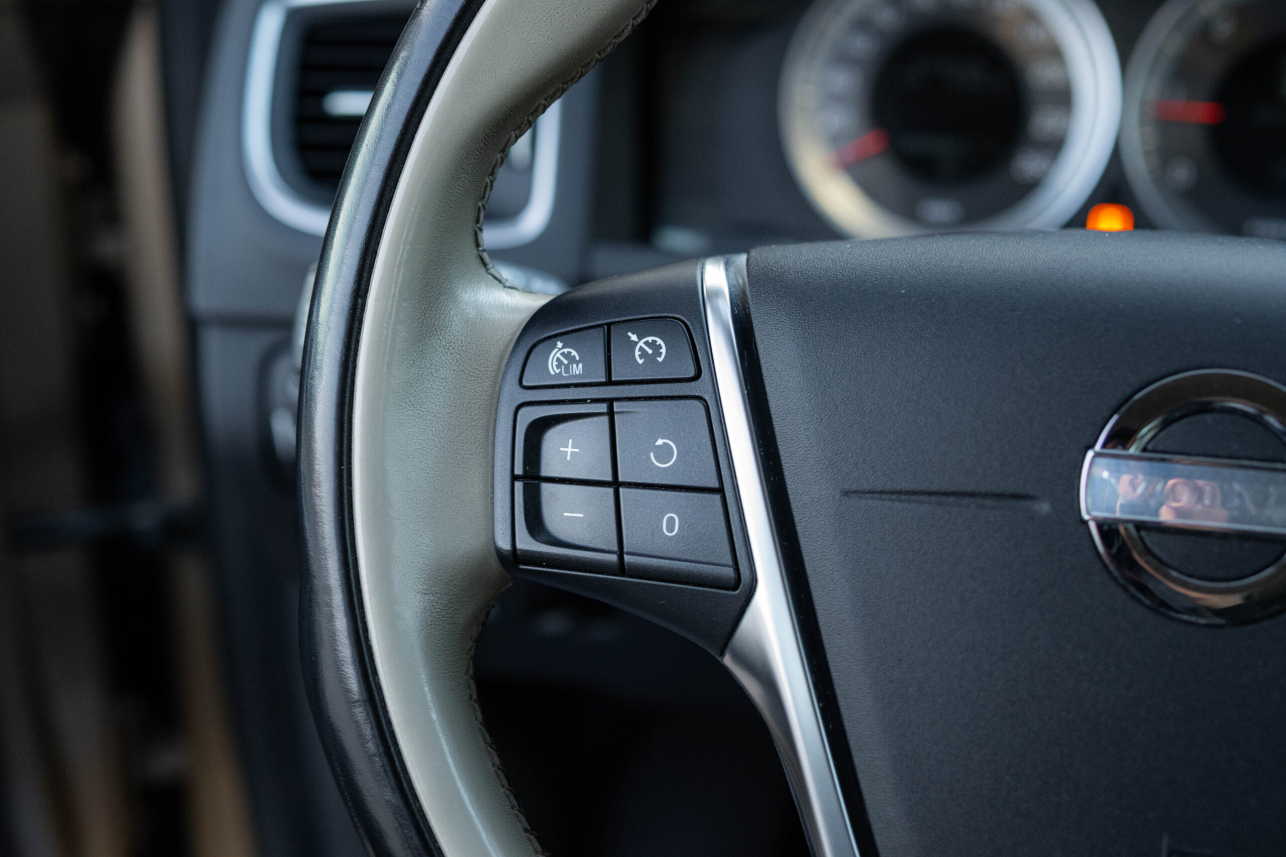 Dziś gościmy Volvo V60 w odmianie wysokoprężnej D3 w bardzo ciekawym zestawieniu kolorystycznym. Rzadki lakier Electrum Gold Metallic łączy się tu z beżowym wnętrzem ozdobionym elementami wykończeniowymi w stylistyce drewna. Ciekawym zabiegiem stylistycznym jest dwukolorowe koło kierownicze, dodające wnętrzu nutę luksusu.