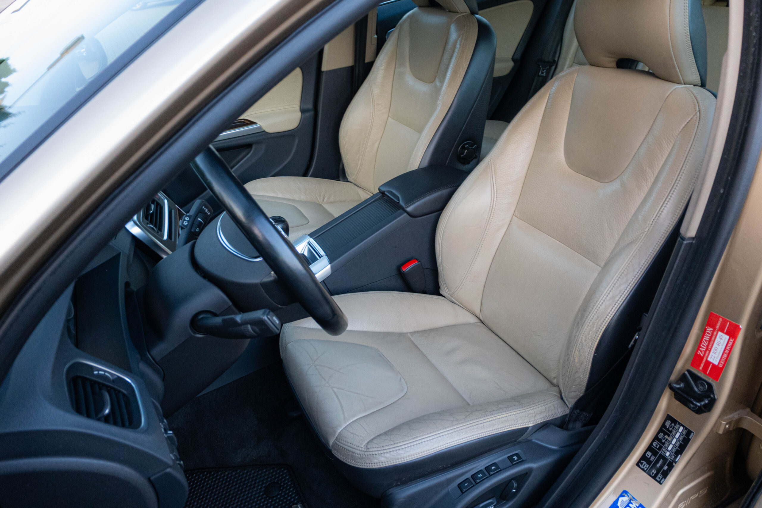 Wnętrze: Beżowe, skórzane